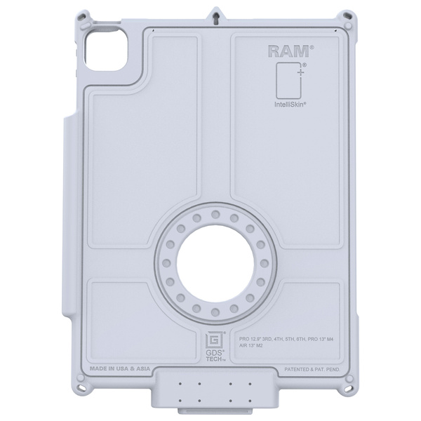 IntelliSkin Next Gen pentru iPad Pro 13 (M4), Air 13 & Pro 12.9 - Gri (RAM-GDS-SKIN-AP47-NG-GRY) este o husă de protecție care combină o carcasă din plastic dur cu cauciuc moale, care absoarbe șocurile. Dispune de un conector GDS integrat turnat direct în piele, care previne deteriorarea portului de încărcare al dispozitivelor dvs. de la andocarea repetitivă. Contactele plate și rezistente de pe conector colectează mai puțină murdărie și sunt mai ușor de curățat. Conectorul integrat are, de asemenea, un port USB Type-C care ocolește plăcuțele pogo pentru a încărca dispozitivul atunci când nu aveți la dispoziție un dock GDS. Vine cu un capac de protecție pentru portul USB-C, asigurând că resturile nu se acumulează de-a lungul timpului în aplicațiile de teren. Acest manșon oferă protecție de grad militar împotriva căderilor și este compatibil cu o varietate de Docks și accesorii GDS. Culoarea gri deschis nu numai că se integrează bine în setările profesionale și industriale, dar adaugă și o estetică curată și modernă. Întotdeauna protejat. Mereu conectat. MarcăSimbolRAM-GDS-SKIN-AP47-NG-GRYCod producător793442030383Greutatea produsului467 gMaterialePolicarbonat și elastomeri termoplasticiTip de ambalajCutie de vânzare cu amănuntulViteza de transferUp to USB 3.1 @ 5Gbps (via D-Shape Contacts)*|Up to USB 2.0 @ 480Mbps (via External USB-C Port)PorturiUSB-C extern 2.0 - CompatibilitateApple iPad Pro 12.9 3rd - 6th GenApple iPad Air 13 (M2)Apple iPad Air 13 (M3)Apple iPad Pro 13 (M4)
