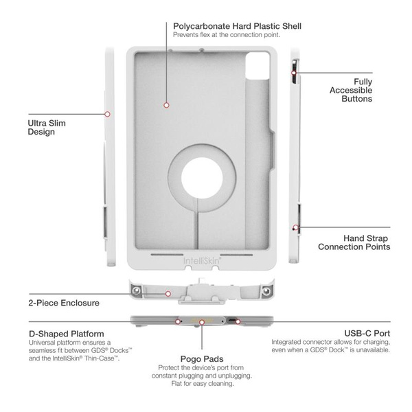 - Two-piece, hard plastic enclosure for Apple iPad Air 11" (M2 & M3) with integrated GDS® connector and pogo pad