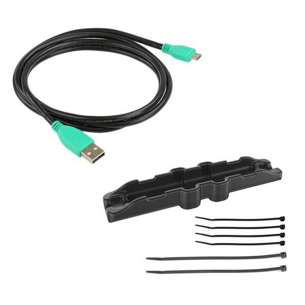 Hardware de asamblare|(4) Șuruburi de mașină #8-32 x 5/8"|(4) Piulițe Nylock #8-32|(1) Cablu drept GDS® Genuine USB 2.0|(1) Carcasă opțională pentru clemă de cablu|(4) Agrafe de cablu mari|(6) Agrafe de cablu mici