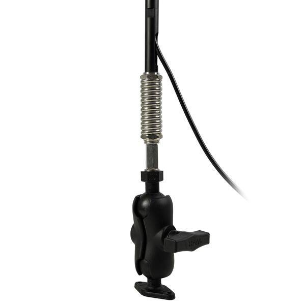 - Kitul include 3/8"-24 x .rAM® Tough-Ball™ cu filet de 375" care se înșurubează în adaptorul de filet al antenei weBoost, braț cu priză de lungime scurtă de dimensiune C și bază RAM® Diamond Ball de dimensiune C pentru montarea cu găurire pe suprafețe plat