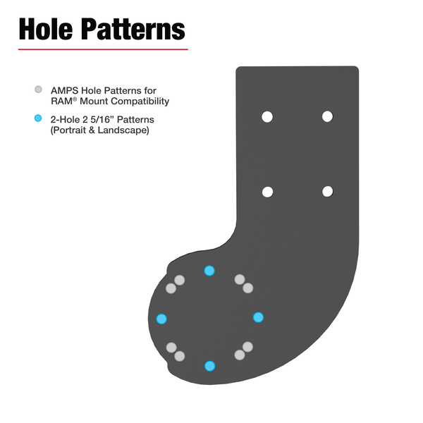 - Supports 2-hole and 4-hole AMPS patterns for use with RAM® holders and GDS® Docks™