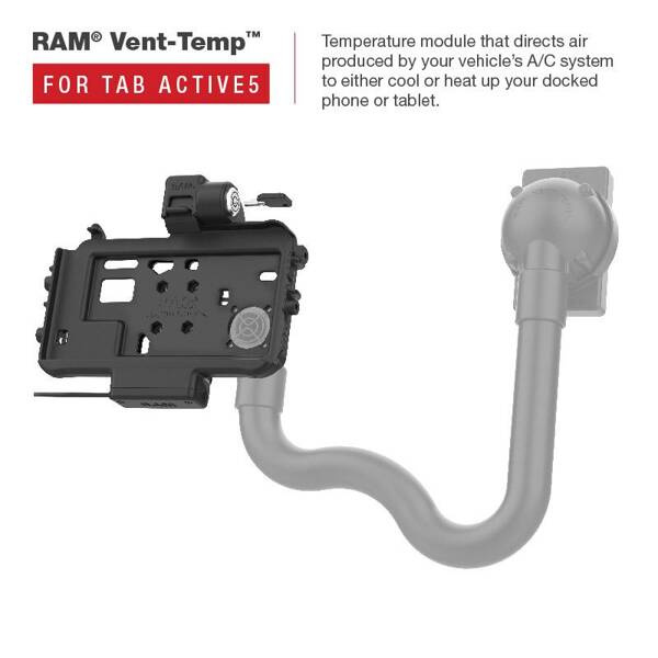 - Dock cu blocare prin cheie proiectat special pentru Samsung Galaxy Tab Active5 & Tab Active3, învelit într-o carcasă de protecție Samsung OEM sau RAM® Skin™