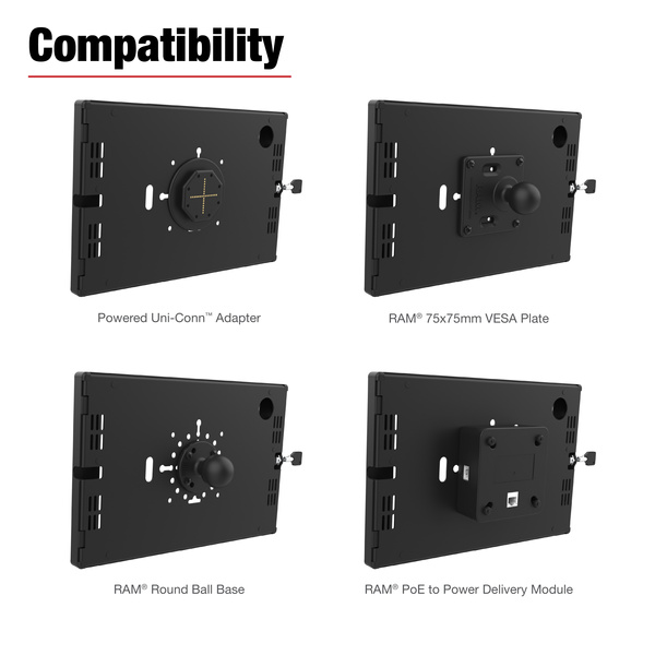 - Secure to RAM® ball mounts with VESA and AMPS pattern; or flush mount