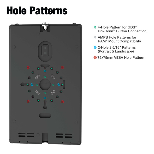 - Secure to RAM® ball mounts with VESA and AMPS pattern; or flush mount