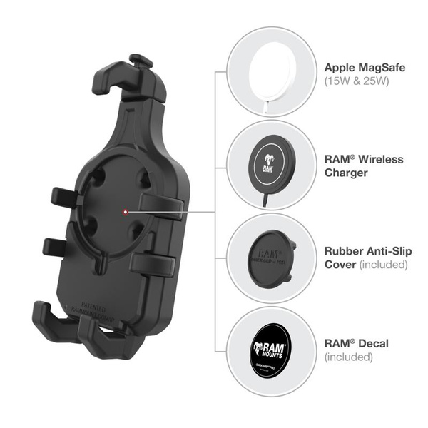 - Includes low-profile RAM® Tough-Claw™ to easily attach to rails and bars ranging from .625" to 1.14" in outer diameter