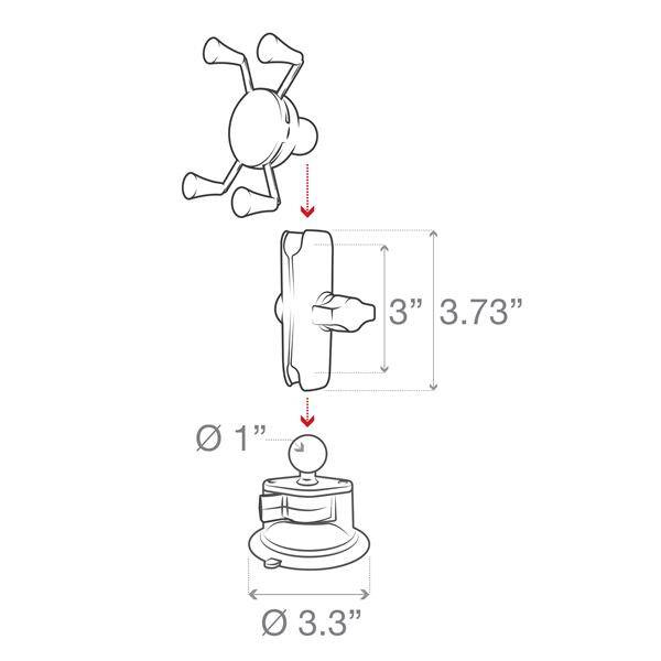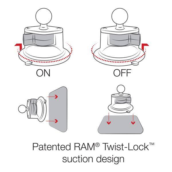 - Include baza cu ventuză RAM® Twist-Lock™ ideală pentru parbrizele vehiculelor și brațul cu priză dublă RAM® de lungime medie, dimensiune B; tehnologia cu bilă și priză permite o ajustabilitate aproape infinită